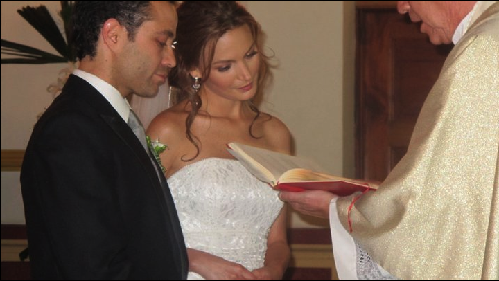 Algunas imágenes de la ceremonia religiosa que unió en sagrado matrimonio a la actriz colombiana Juliana Galvis con su novio, un man de Caracol. La boda tuvo lugar en la capilla del Liceo de Cervantes de Bogotá. Creemos pero no podemos afirmar que la recepción tuvo lugar en el Gun Club.
