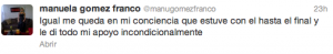 Quien coge el cielo a dos manos se encuentra abrazando sólo aire y polvo, y eso fue lo que le pasó a Manuela Gómez y al noviazgo que sostenía con Edwin Garrido, quien como ya se esperaba, dio por terminada la relación al finalizar Protagonistas de Nuestra Tele, declaración que hizo mientras daba una entrevista a la emisora de La Mega.