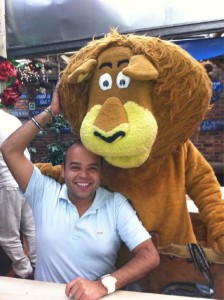 Foto del siempre sonriente Carlos Vargas de Sweet con un gigantesco, pero al parecer amigable, miembro del reino animal. ¿Cuál sería un buen pie de foto para esta imagen?
