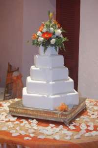 - arreglos florales de William Baena: rosa rojas y naranjas, cartuchos y orquideas en el bouquet ($1’500.000)